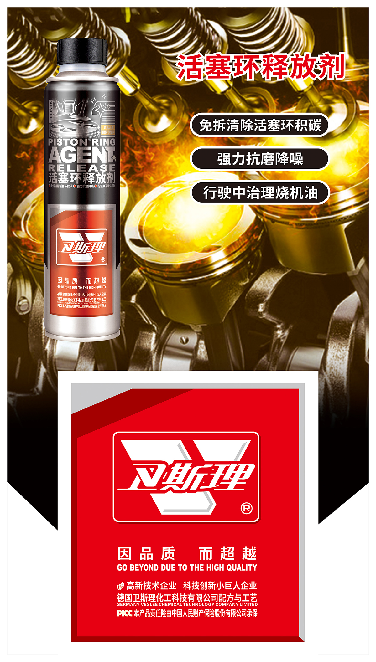 环弹性及密封性能。同时可快速有效清洁发动机、降低噪音、