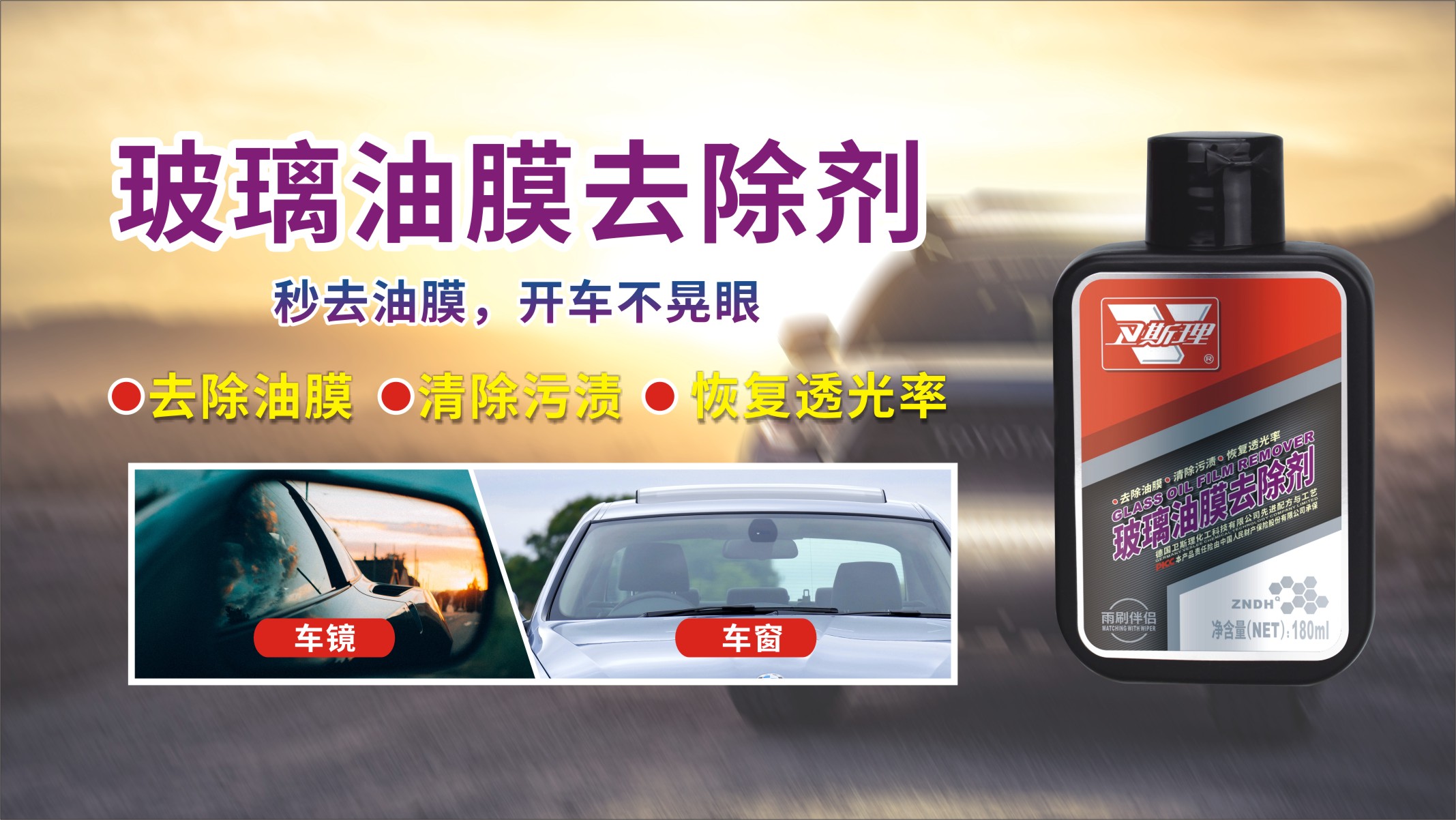 际优质原料精制而成,能有效清除玻璃表面上的油膜、虫胶、