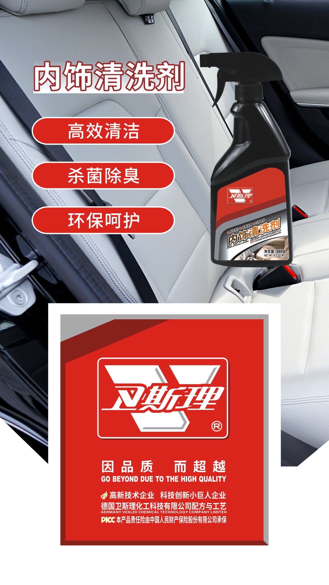 腐蚀性,广泛应用于车内皮革,绒布,天蓬,塑胶及其它一切内饰品的清洁养护。
