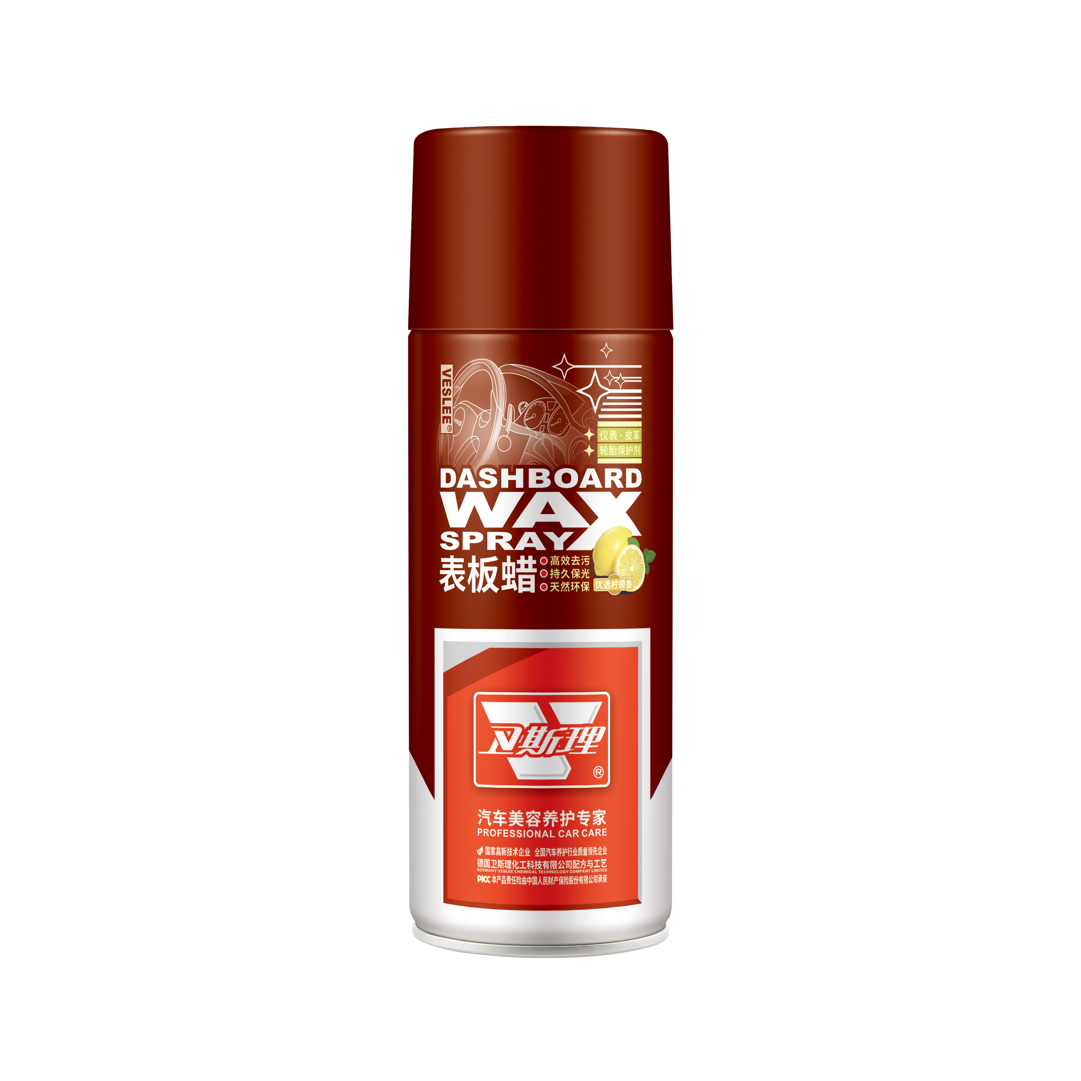 本品由德国卫斯理化工科技有限公司提供配方和工艺采用国际优质原料精制而成;是一种高效环保的多功能快速上光剂:①可Q带给车内快速去除灰尘污垢;②自然柠檬香薰气息;③能立即恢复车辆仪表板、皮革座椅、合成皮革制品等物体表面原有自然色,④形成一层具有抗静电功能的持久光亮保护层,减缓皮革塑料及橡胶制品的老化和减少灰尘积聚。