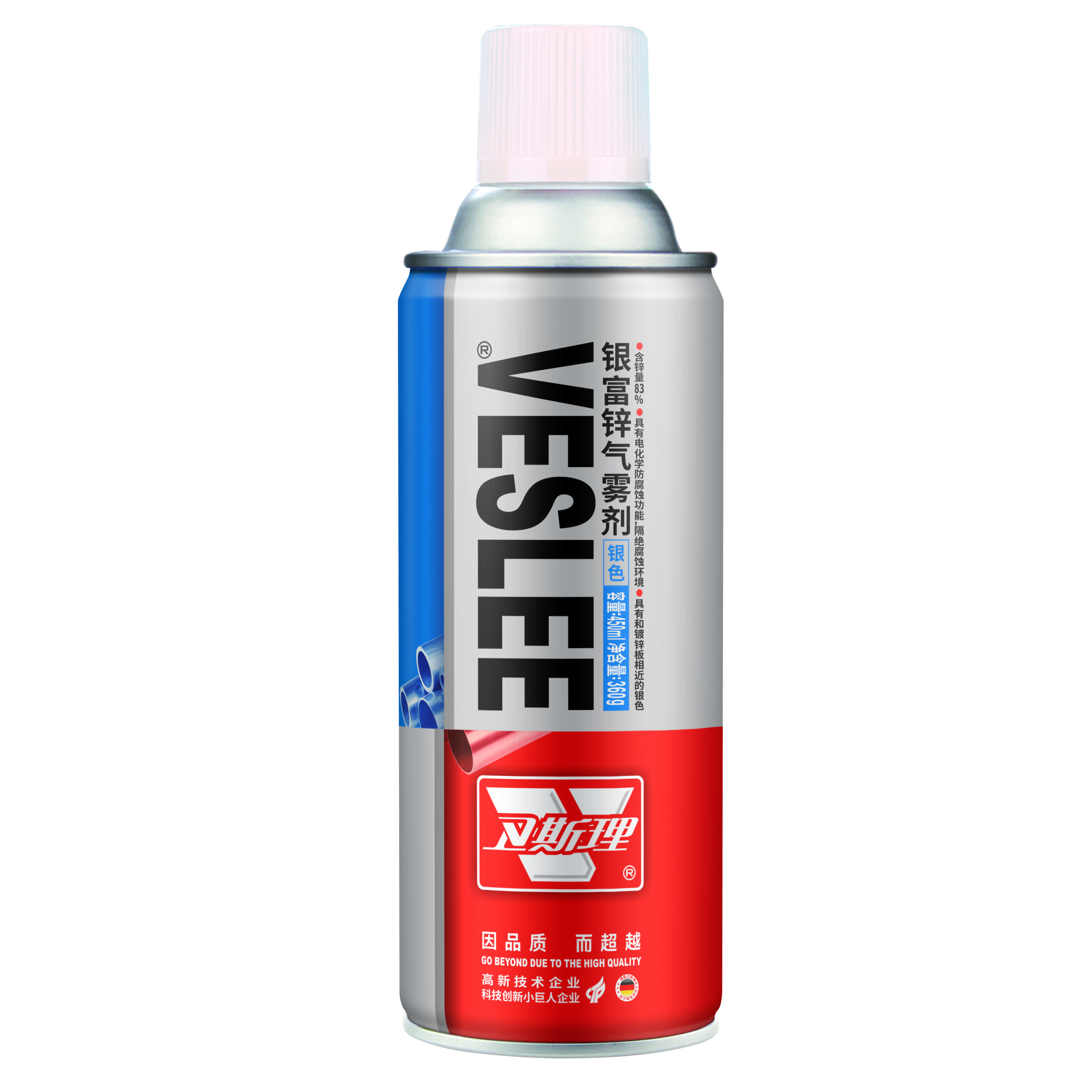 本品由德国卫斯理化工科技有限公司提供配方和工艺,是单组分型富锌涂料,涂层干膜中含锌量高达83%,具有电化学防腐蚀功能,隔绝腐蚀环境,涂膜颜色为和镀锌板颜色相近的银色,随着暴晒时间的推移,涂膜颜色将变得和镀锌件颜色更加接近;本品具有干燥时间快、施工简简便等特点。建议以卫斯理冷镀锌为底漆,防腐蚀功效更优秀。
