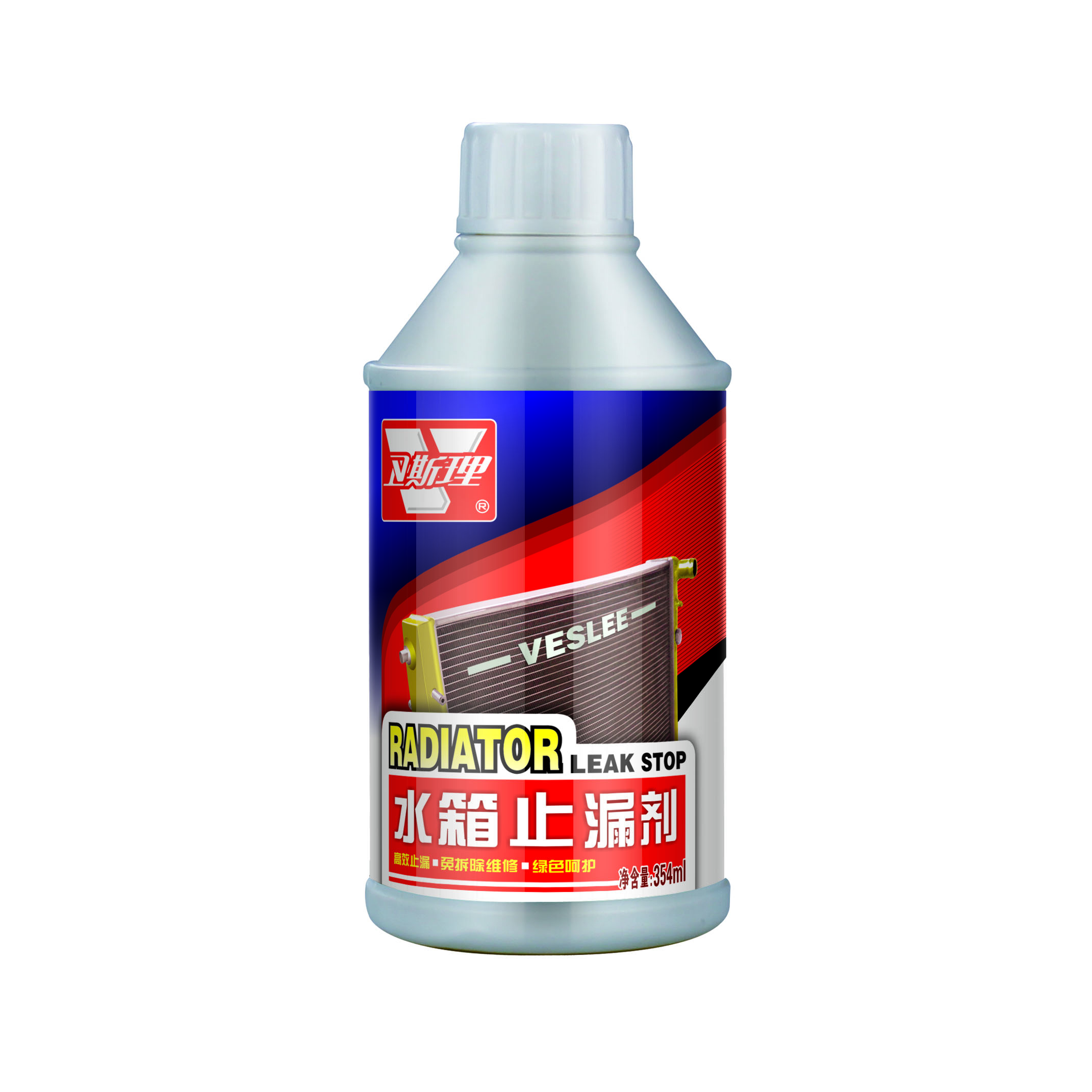 本品由德国卫斯理化工科技有限公司提供配方和工艺要求,优选国际先进原材料精制而成,具有高效、快速止漏,免拆除维修,防腐防锈,不粘附,不阻塞水路等优点。能在汽车运行过程中,有效阻止冷却系统水箱、散热片、膨胀塞等部件裂缝及小孔的泄露,防止漏洞进步扩大。对金属、橡胶管路、密封垫等无损害。本品可加入到任何品牌的防冻液和冷却液中使用。